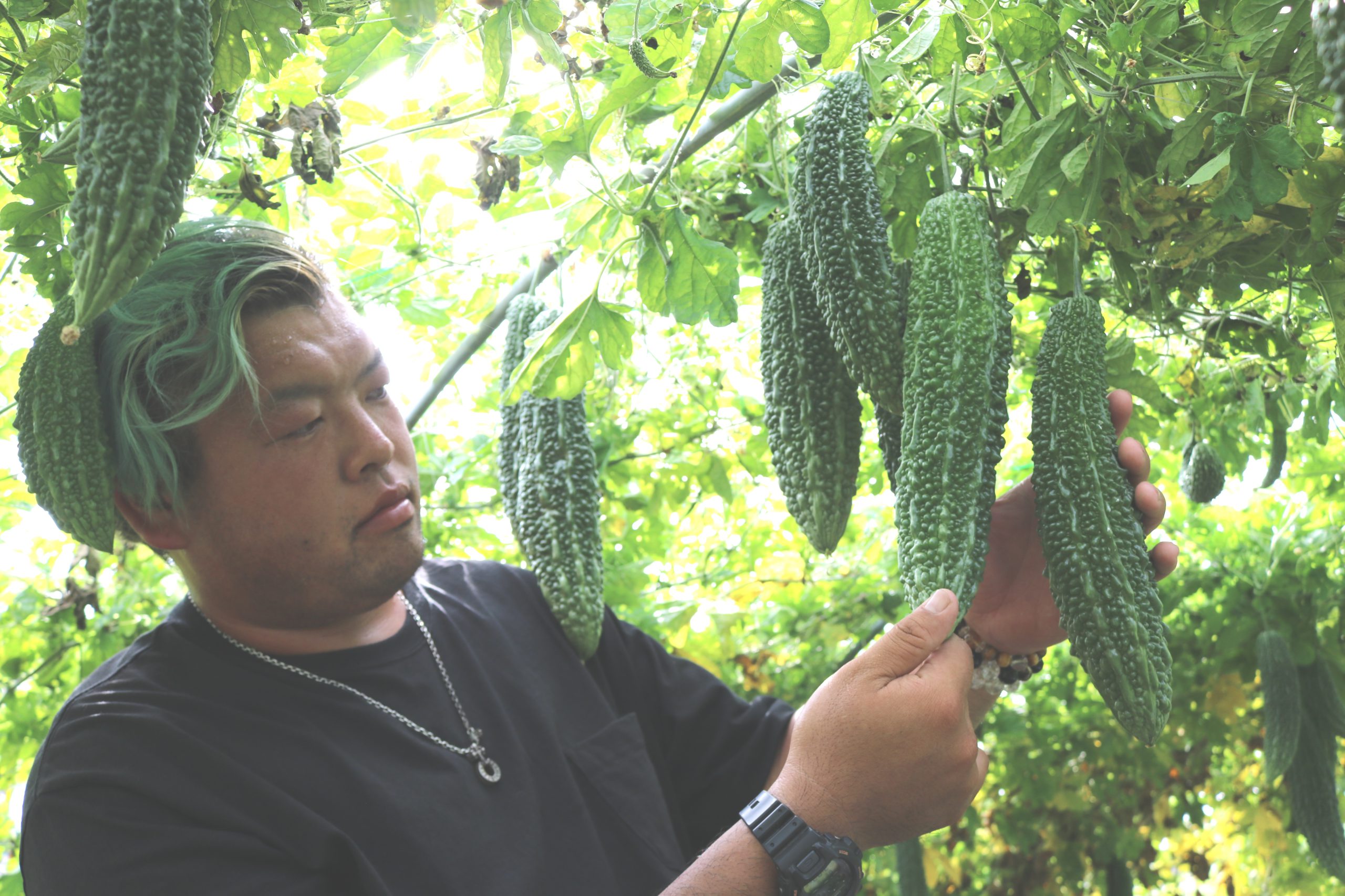 _母・妻・従業員2名と共にキャベツ5㌶・ブロッコリー40㌃・枝豆40㌃を栽培している徳島市国府町の寺岡誠介(32)さん。就農して11年目となる今期、新たにピーマン10㌃・ゴーヤ10㌃に挑戦している。